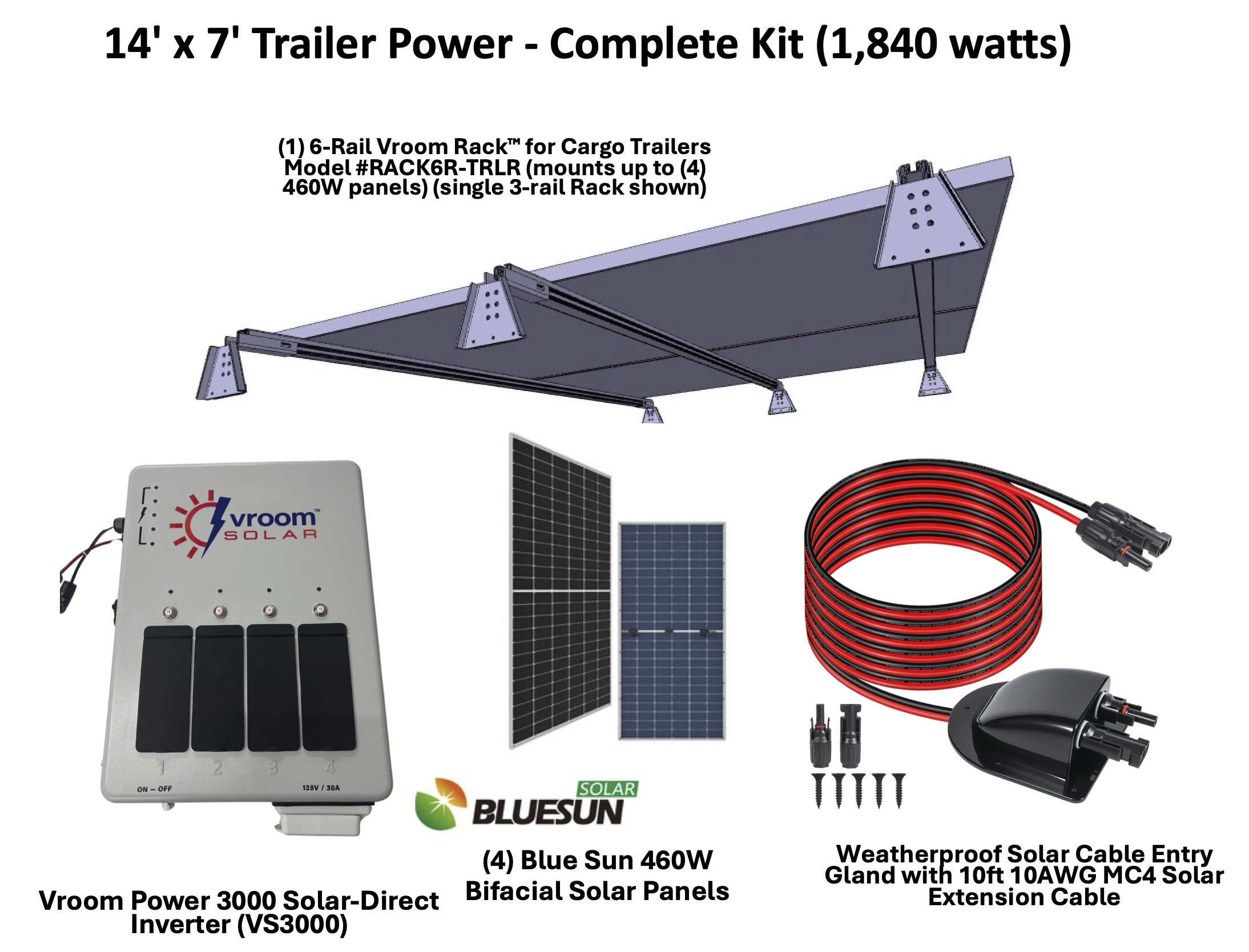 Our lowest-priced 14’ Trailer kit! Everything you need to add power to your landscaping trail or construction job-site trailer. Kit** includes: