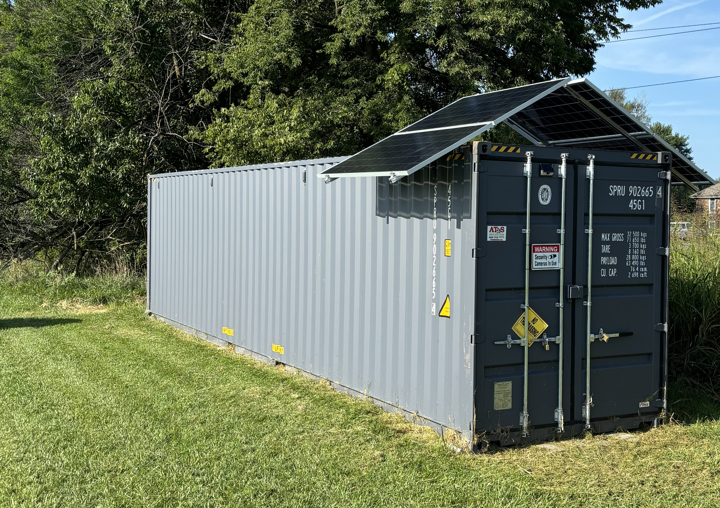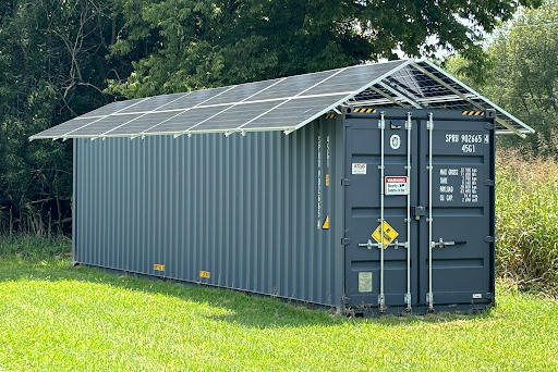 We do recommend that a shipping container be pointed North/South, so that the A-Frame rack panels will be oriented East/West. E/W 30° solar panels have a 3-6% loss compared to south facing panels. South facing solar panels have the best output, but that output is strong at midday and weak in the morning and afternoon. E/W 30° orientation is leveled production longer, all day.