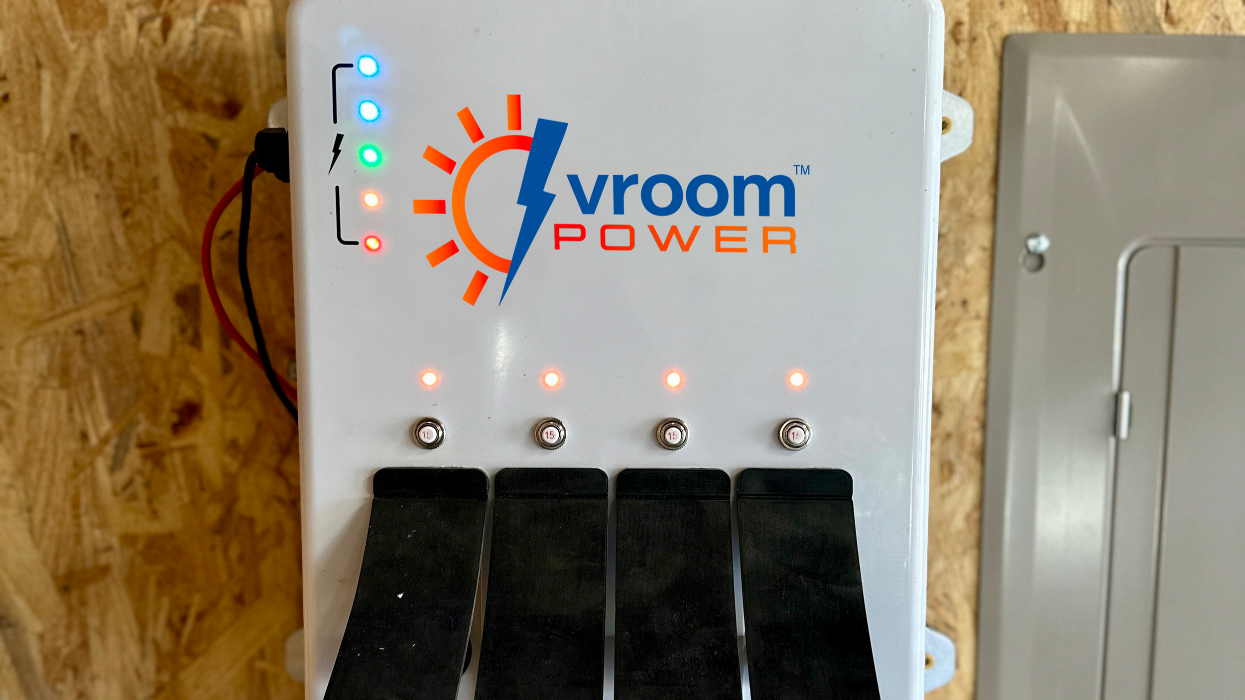 Patent-Pending Vroom Solar 3000™ Control Center (inverter), with (4) standard 110-volt AC outlets and ancillary wiring